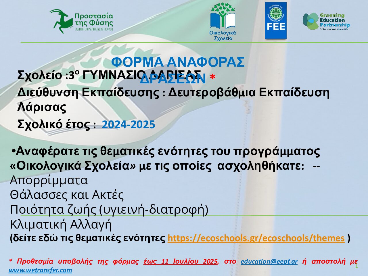 template ppt _ Eco schools_Final 2024-2025.pptx11/09/2025Written by 3o Γυμνάσιο Λάρισας Leave a Comment Total Page Visits: 85 - Today Page Visits: 1