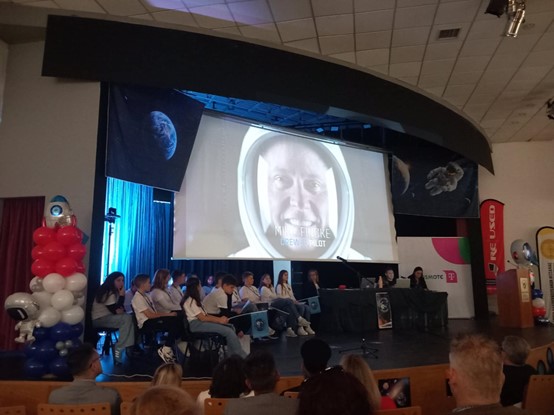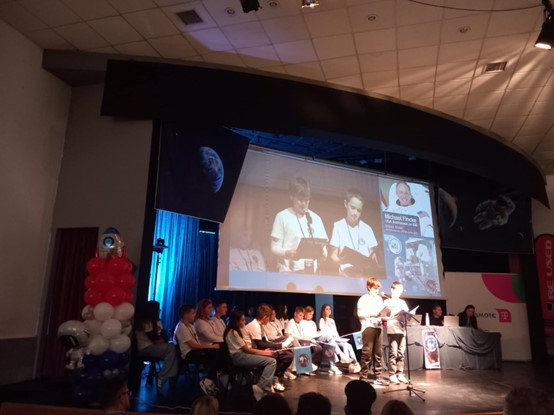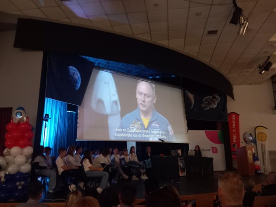 Δεκαπέντε μαθητές της Α’ Γυμνασίου του σχολείου μας συμμετείχαν σε μια ιδιαίτερα ξεχωριστή δράση με τίτλο “L-ARISS-A” η οποία πραγματοποιήθηκε την Παρασκευή 24 Οκτωβρίου, στη Δημοτική Πινακοθήκη-Μουσείο Γ.Ι. Κατσίγρα. Οι μαθητές και μαθήτριες συνομίλησαν σε ζωντανή σύνδεση για 11’ με τον Αμερικανό αστροναύτη Micke Fincke, θέτοντάς του ερωτήματα στην αγγλική γλώσσα και λαμβάνοντας τις απαντήσεις του απευθείας από τον διαστημικό σταθμό ISS (International Space Station).