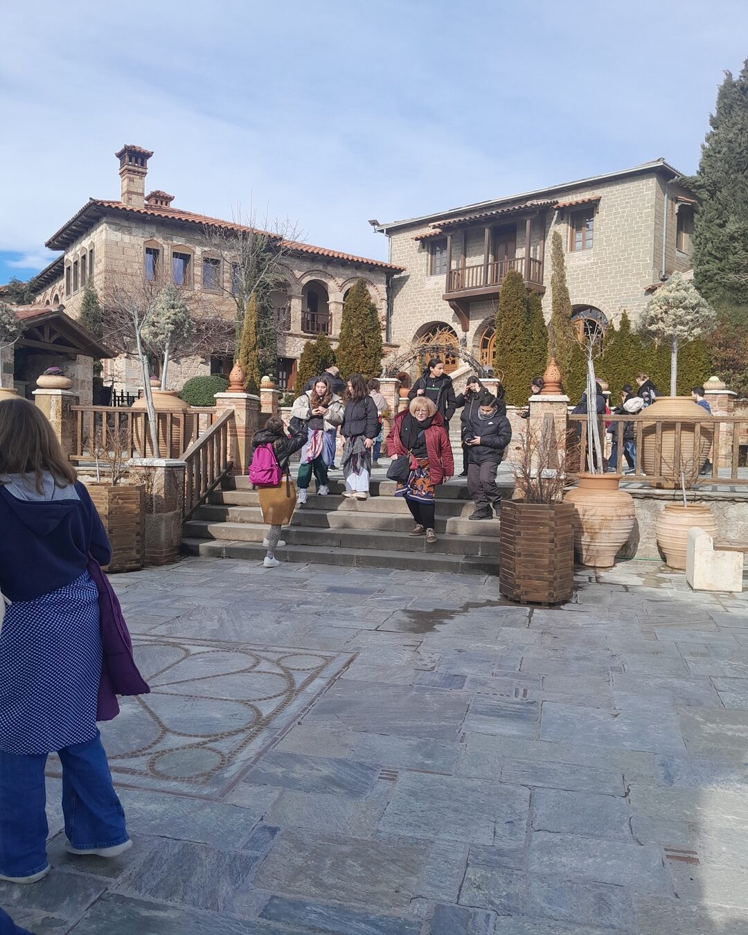 Πρώτος σταθμός της εκδρομής ήταν τα Μετέωρα, όπου οι συμμετέχοντες θαύμασαν τους εντυπωσιακούς βραχώδεις σχηματισμούς και τα ιστορικά μοναστήρια που δεσπόζουν στις κορυφές των βράχων. Οι μαθητές ενημερώθηκαν για την ιστορία των Μετεώρων, τον τρόπο ζωής των μοναχών, καθώς και για τη θρησκευτική, αρχιτεκτονική και καλλιτεχνική τους αξία, κατανοώντας τη σημασία τους ως μνημεία παγκόσμιας πολιτιστικής κληρονομιάς της UNESCO, αλλά και ως αναπόσπαστο κομμάτι της ορθόδοξης παράδοσης και του ελληνικού πολιτισμού.