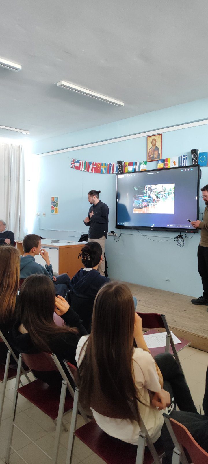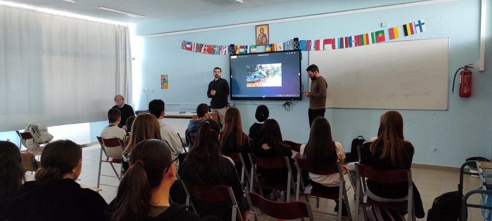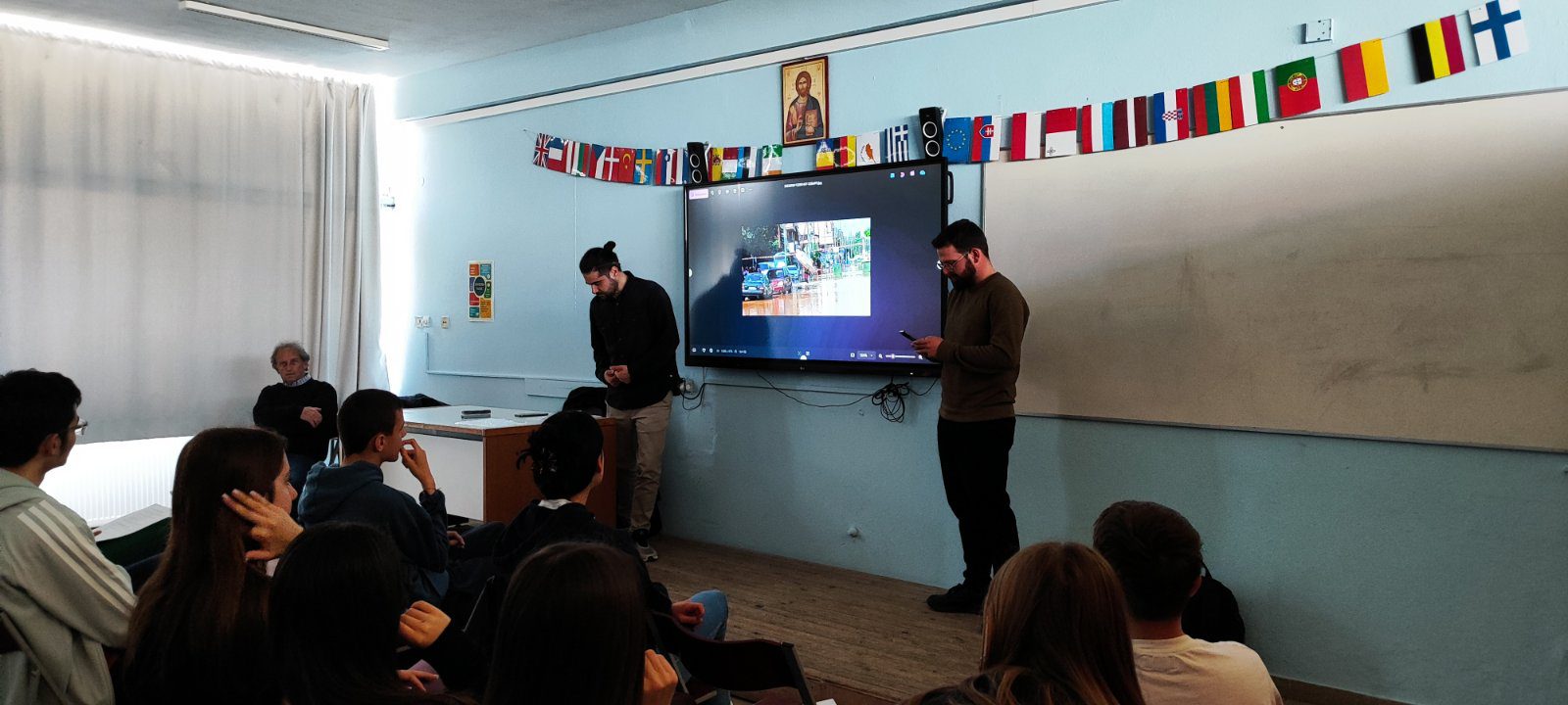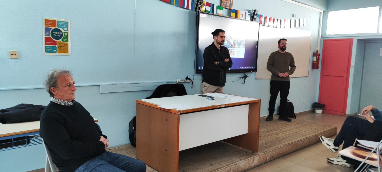 Στο πλαίσιο του ευρωπαϊκού προγράμματος Erasmus+ με θέμα «Δημοσιογράφοι για το Περιβάλλον», το σχολείο μας είχε τη χαρά να φιλοξενήσει τον  δημοσιογράφο κ. Αναγνωστόπουλο, τον φωτορεπόρτερ κ. Τσιάρα και τον  χημικό περιβαλλοντολόγο, επιστημονικό συνεργάτη της Περιφέρειας σε θέματα φυσικών καταστροφών κ Αργυρόπουλο..